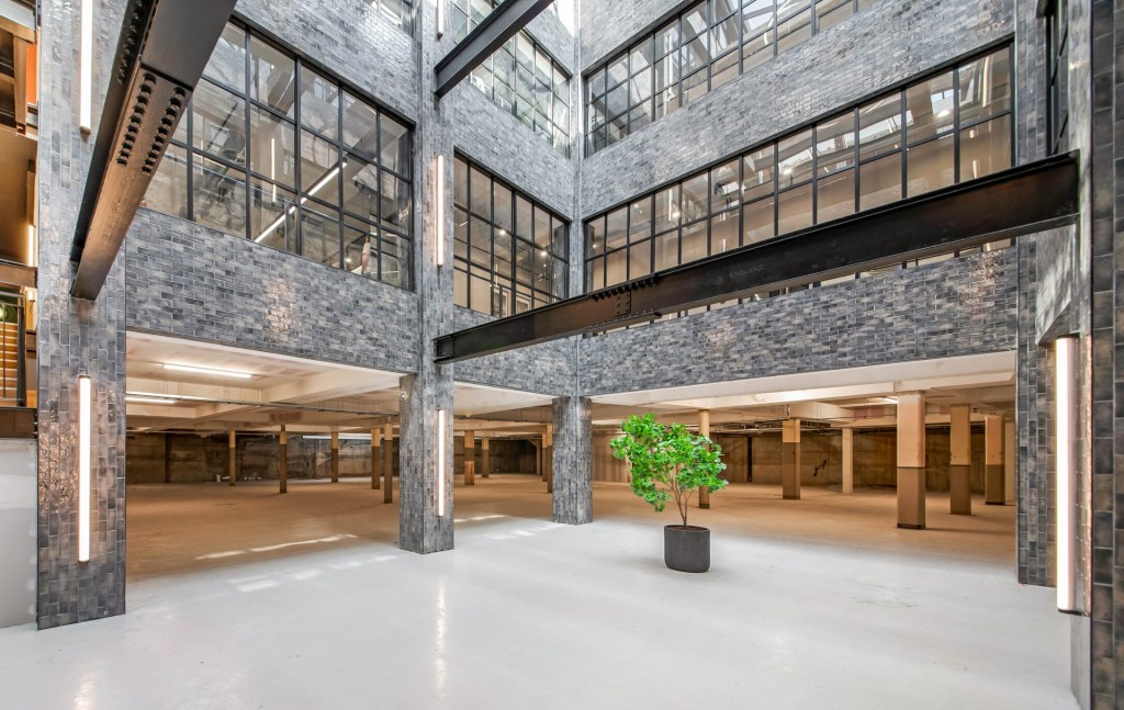 Low Angle photo of Step and floor tiling in front of elevators at teh Adagio Hotel. Nlack Nosing tiles are visible as they contrast with the White floor tile